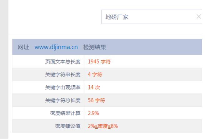 2.关键词密度检测,网站关键词密度相对并不高,进行适当的调整,增加关键词频率。